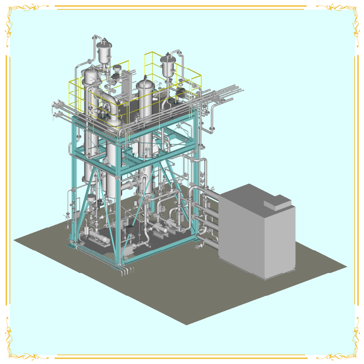 現在の当社の主力製品は、化学プラント事業(エンジニアリング事業部)においては省エネとCO2の排出量削減を追求した蒸留・蒸発装置が主流となり、これらの装置を備えた工場建築までを一括して施工する事業にも力を入れています。